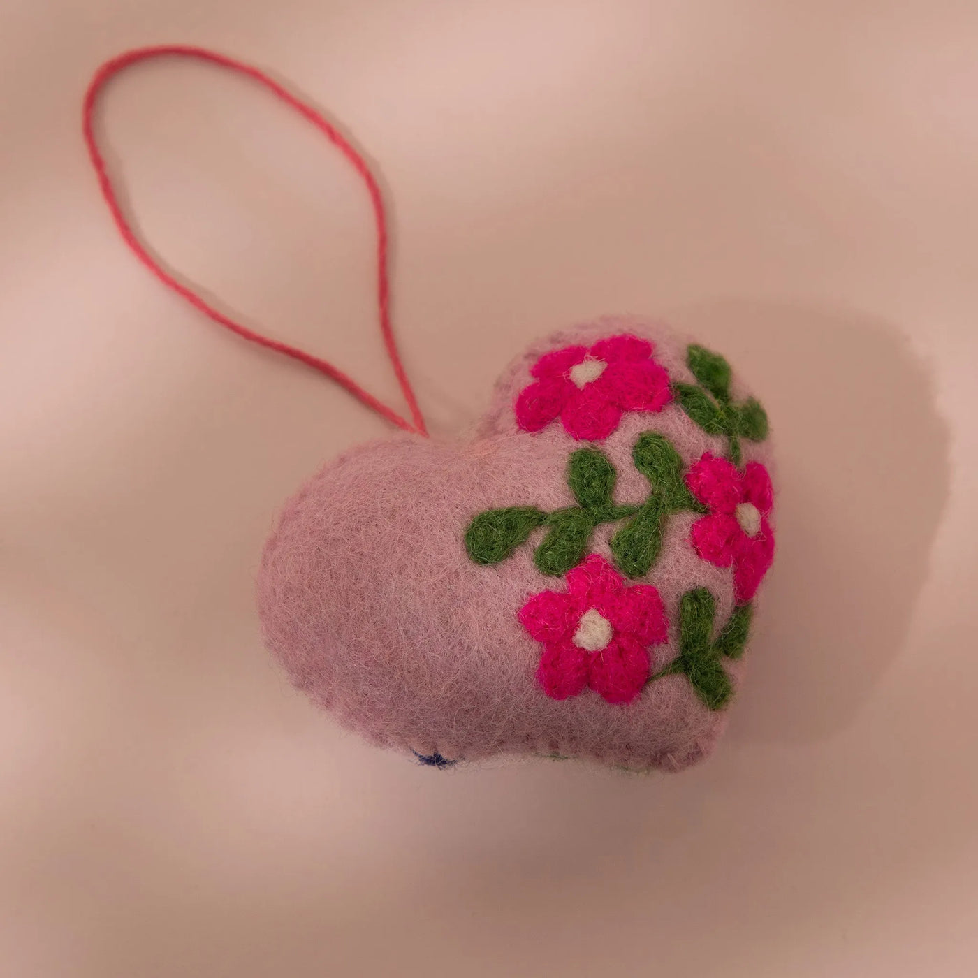 This Pink Floral Heart Wool Felt Plush Toy is a charming gift for any occasion. Handcrafted with soft, eco-friendly wool felt, it features vibrant floral designs in pink and purple, adding a cozy and heartfelt touch. Perfect for nurseries, living rooms, or as a thoughtful gift.