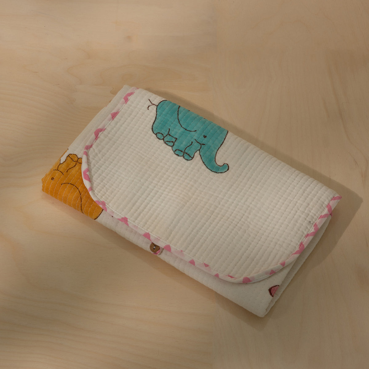 Travel-friendly Diaper Changing Mat with Animal Print – Portable, Soft, Easy-to-Clean Cotton Mat