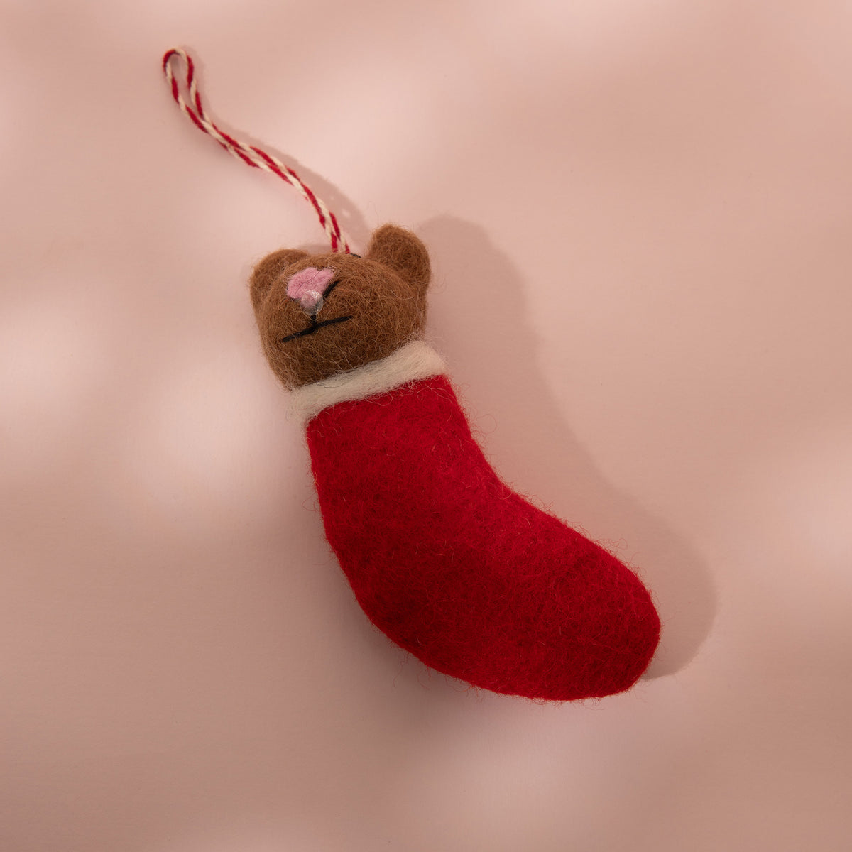 Brown Bear Wool Felt Stocking Ornament