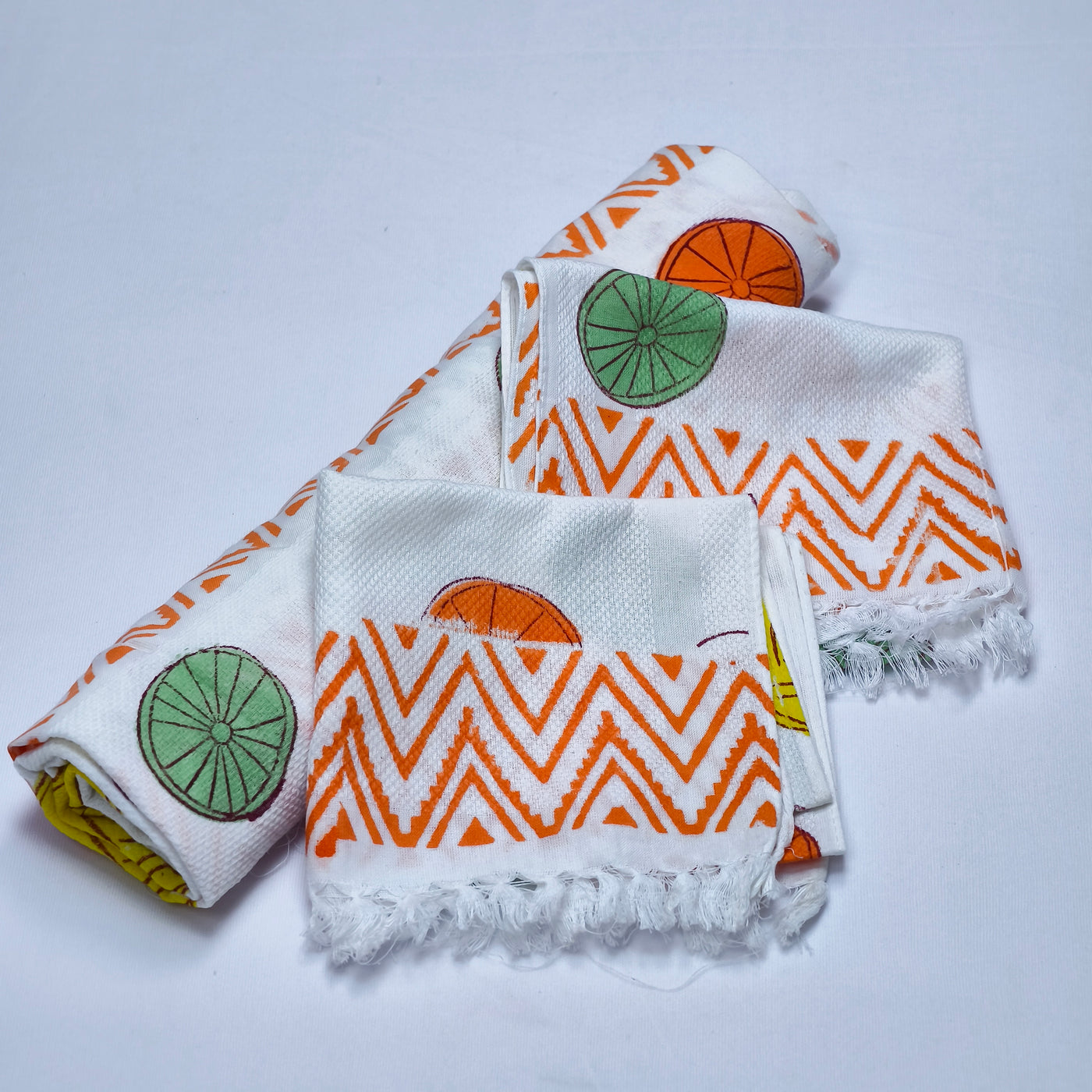 Fruit Print Cotton Kids Towel Set with 2 Napkins